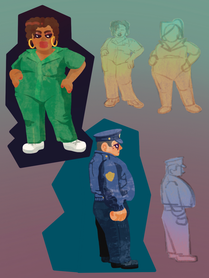Apart of my practice is loosely experimenting and sketching. This allows me to view my subject in different ways and approach pieces from a new perspective. For example, focusing only on shape language, colour blocking and/or two- to three-minute sketches. Digitally rendered in Procreate.